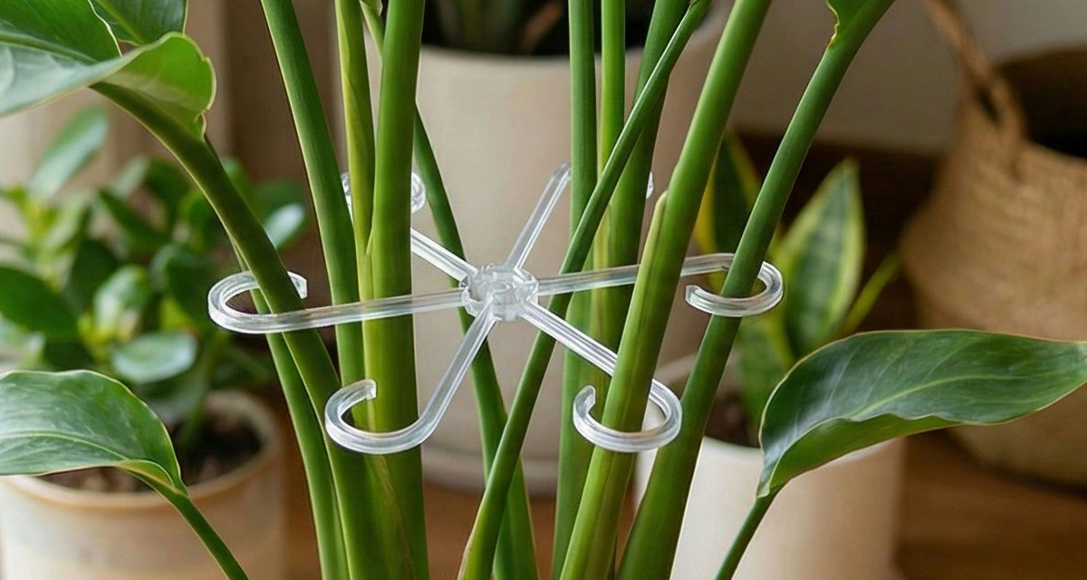 Dieses Stützelement legt sich schnell um Zweige, ganz ohne Werkzeug. Töpfe wirken plötzlich wieder ordentlich, sodass Fensterbänke angenehm aufgefrischt erscheinen.