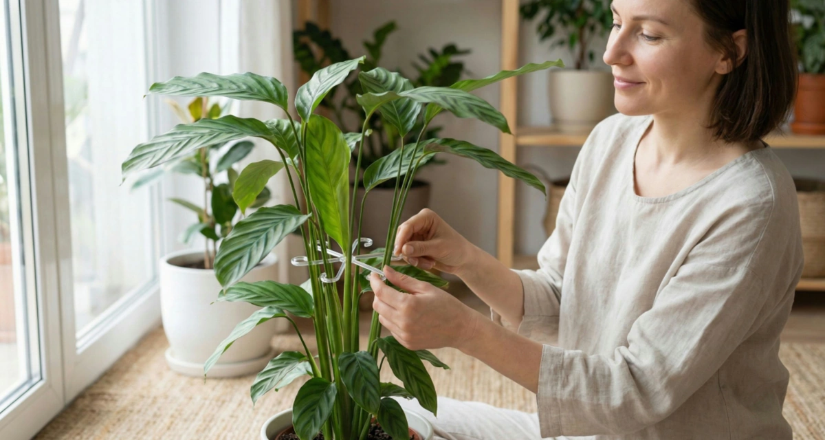 Meine Friedenslilie hat sich ständig zum Fenster hin gebogen. Mit dieser Stütze bleiben die Blätter aufrecht, der Topf sieht ordentlicher aus und das Gießen ist weniger kleckrig.
