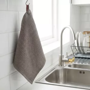 Dieses Waffeltuch macht den Abwasch weniger lästig. Es nimmt jeden Tropfen von Töpfen und Tellern auf und unser Edelstahlspülbecken sieht danach poliert aus.
