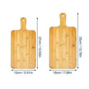 Das Nygex-Bambusbrett verwandelt geschäftige Küchen schnell in ruhige Räume. Die großzügige Fläche eignet sich mühelos für Fleisch, Käse, Gemüse, Obst und Pizza. Glatte Kanten schützen die Finger, während der lange Griff die Hände bequem hält. Hängen Sie es nach dem Abwasch auf, um sofort Platz im Schrank zu sparen.