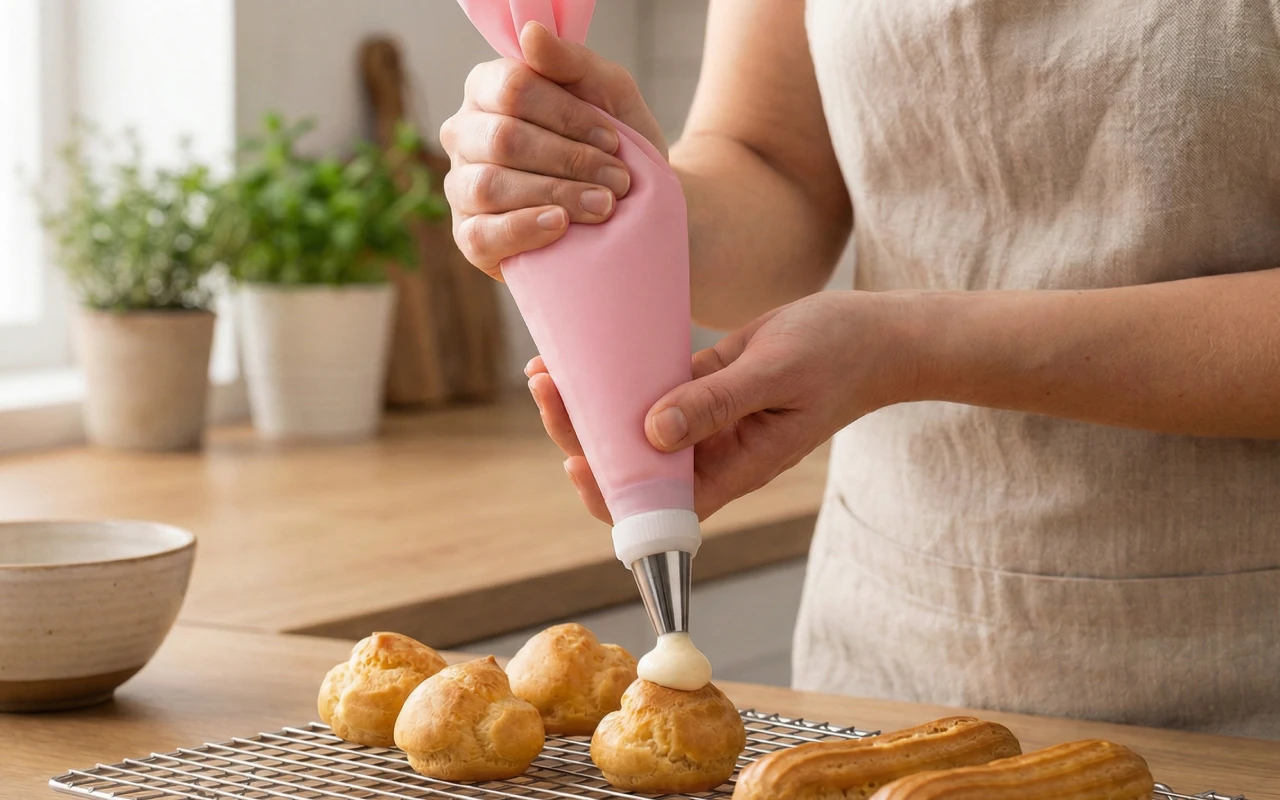 Ich habe den Spritzbeutel mit Schokoladenganache für Eclairs verwendet und war überrascht, wie gleichmäßig sie floss. Das Reinigen des Silikons danach ging schnell, einfach warmes Seifenwasser.