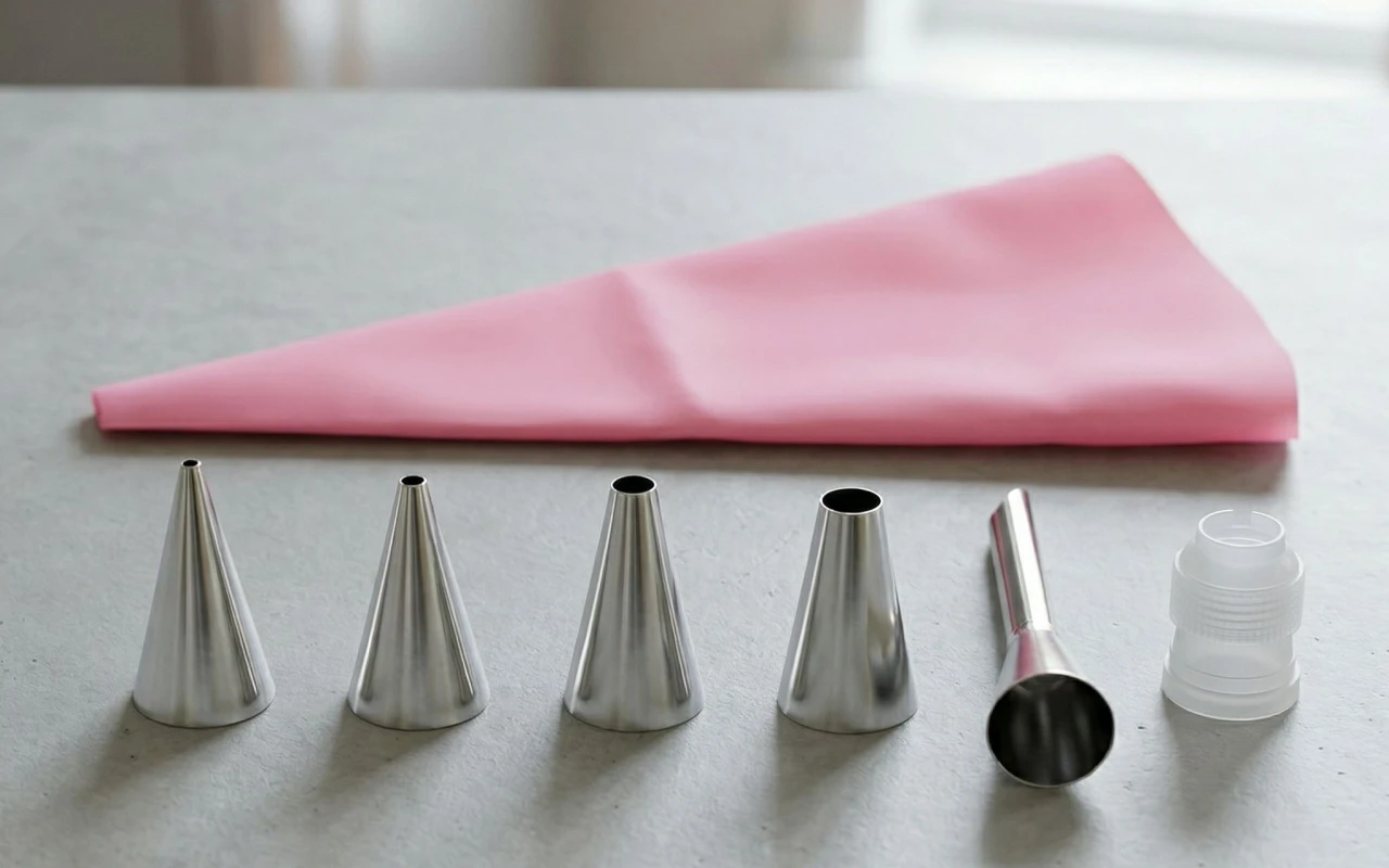 Ich bin neu im Backen, und trotzdem sahen meine Cupcakes beim ersten Versuch schon schick aus. Die verschiedenen Metallformen helfen mir, Blumen, Wirbel und Ränder ohne Stress zu spritzen.