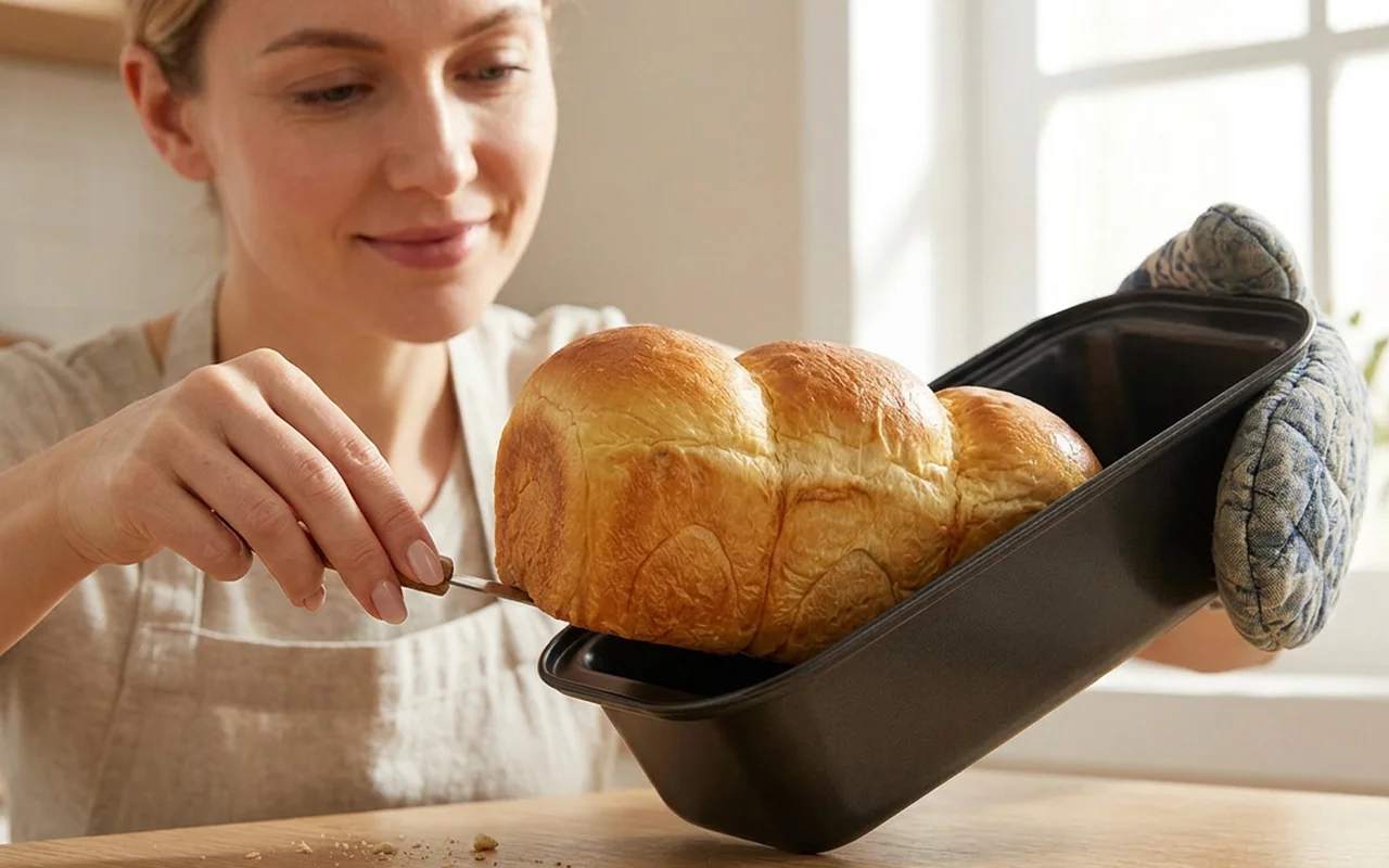Die glatt beschichtete Nygex-Kastenoberfläche verhindert, dass der Teig an den Rändern haftet. Das fertige Brot löst sich jedes Mal sauber aus der robusten Stahlform.