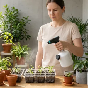 Feiner, einstellbarer Nebel des Nygex-Wasserzerstäubers verhindert durchnässte, verdichtete Erde. Blätter bleiben sauber, hydratisiert und vor Schädlingen, Schimmel und gängigen Krankheiten geschützt.
