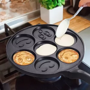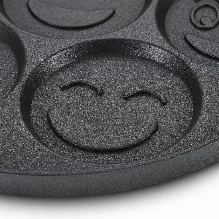 Ich habe die Smiley-Pfanne für die Übernachtungen meiner Enkel gekauft. Sie kichern, wenn sie sich ein Gesicht aussuchen, und essen jeden Bissen auf. Sie lässt sich schnell mit einem weichen Schwamm reinigen.