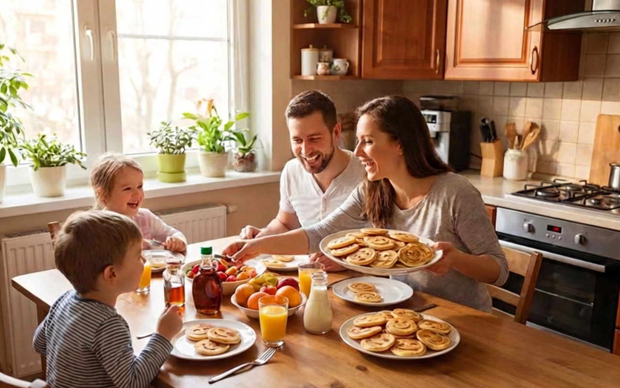 Als alleinerziehender Vater rettet mir diese Pfanne die Schultage. Ich gieße einmal Teig hinein, wende, und das Frühstück ist fertig. Die Kinder lieben es, ihre lustigen Gesichter zu vergleichen.