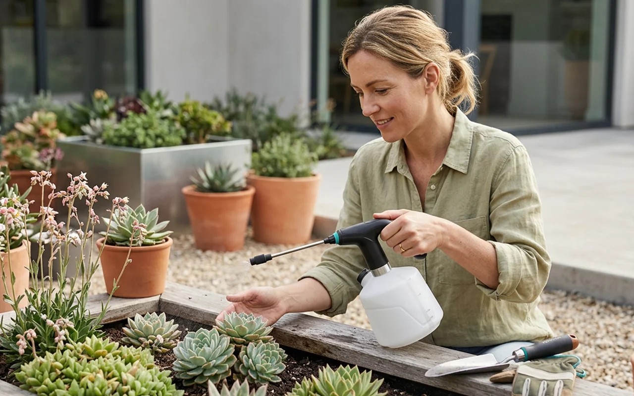 Die Nygex-Flasche erzeugt weiche, einstellbare Tropfen, die empfindliches Laub schützen. Gleichmäßige Feuchtigkeit verhindert trockene Stellen und hilft den Wurzeln, Nährstoffe effizient aufzunehmen.