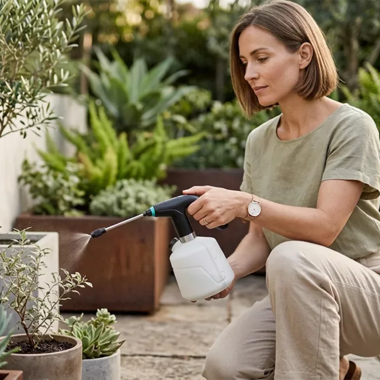 Der Nygex-Sprüher bewässert viele Töpfe schnell mit einem kontinuierlichen, sanften Sprühstrahl. Der große, wiederaufladbare Akku unterstützt lange Einsätze, sodass Gärten gut mit Wasser versorgt bleiben.