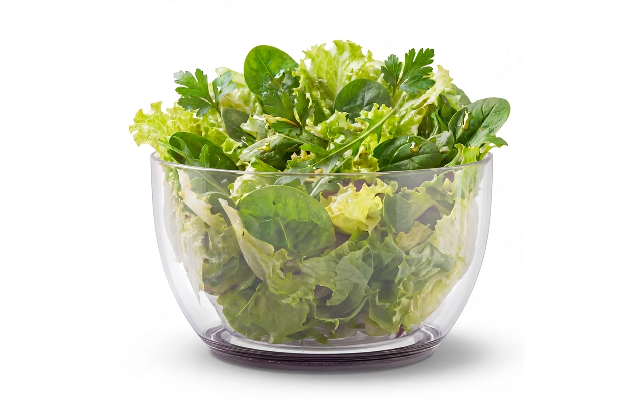 Die große, transparente Schüssel bietet Platz für reichlich Salat, Kräuter oder Beeren. Bereiten Sie großzügige Portionen mit dem Nygex-Salattrockner zu.