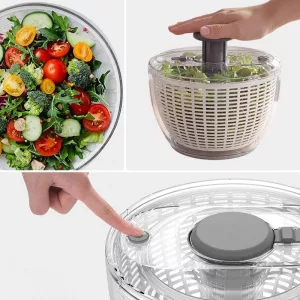 Ich bereite sonntags den Salat für die ganze Woche vor. Diese Schleuder hält meinen Salat knackig, die Kräuter frisch, und ich liebe, dass die klare Schüssel mich alles beim Schleudern sehen lässt.