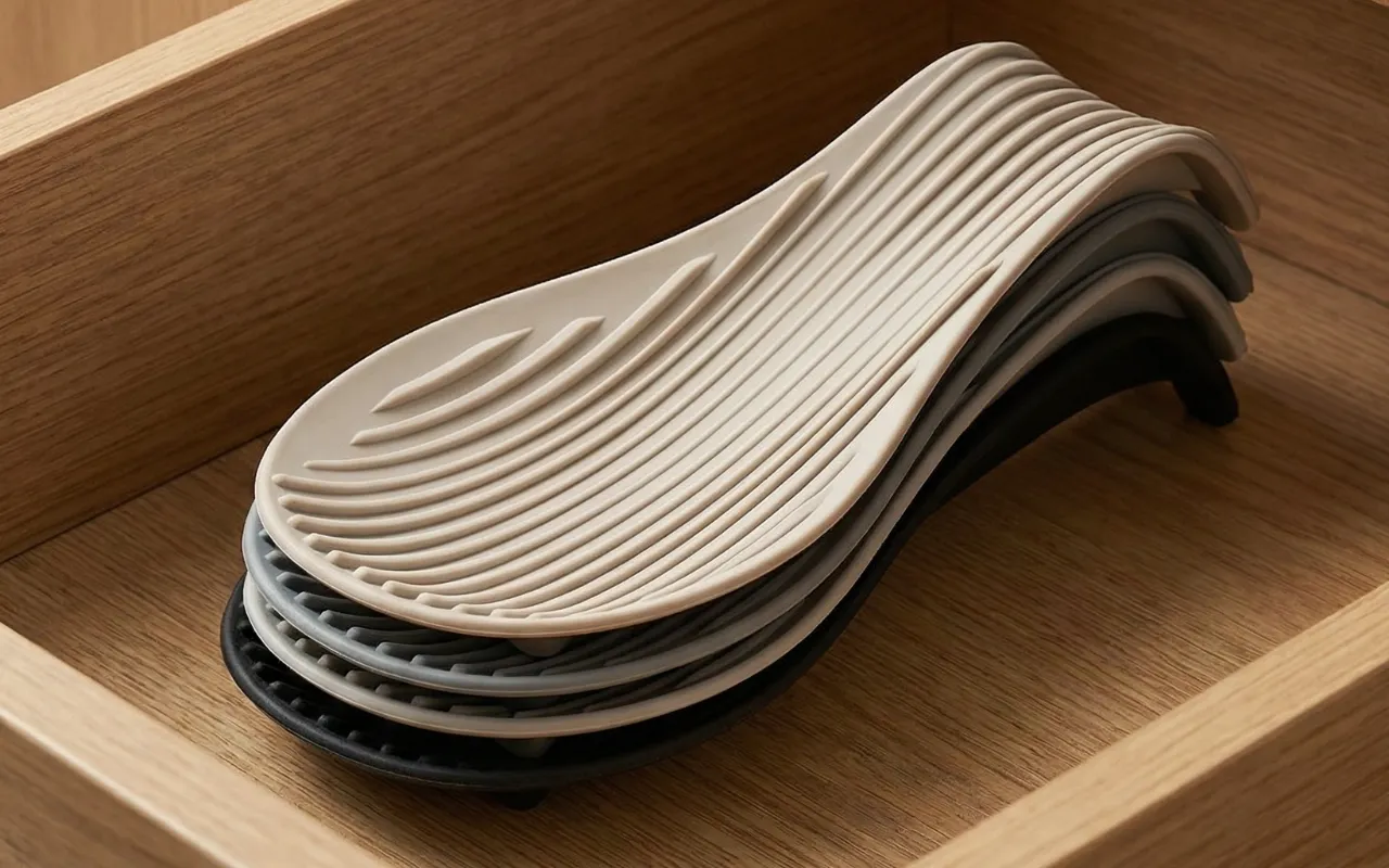 Das Silikon-Tablett hält meinen heißesten Pfannen problemlos stand, ohne sich zu verziehen. Ich lege Pfannenwender aus der Pfanne darauf ab und meine Holzarbeitsplatten bleiben kühl und sicher.