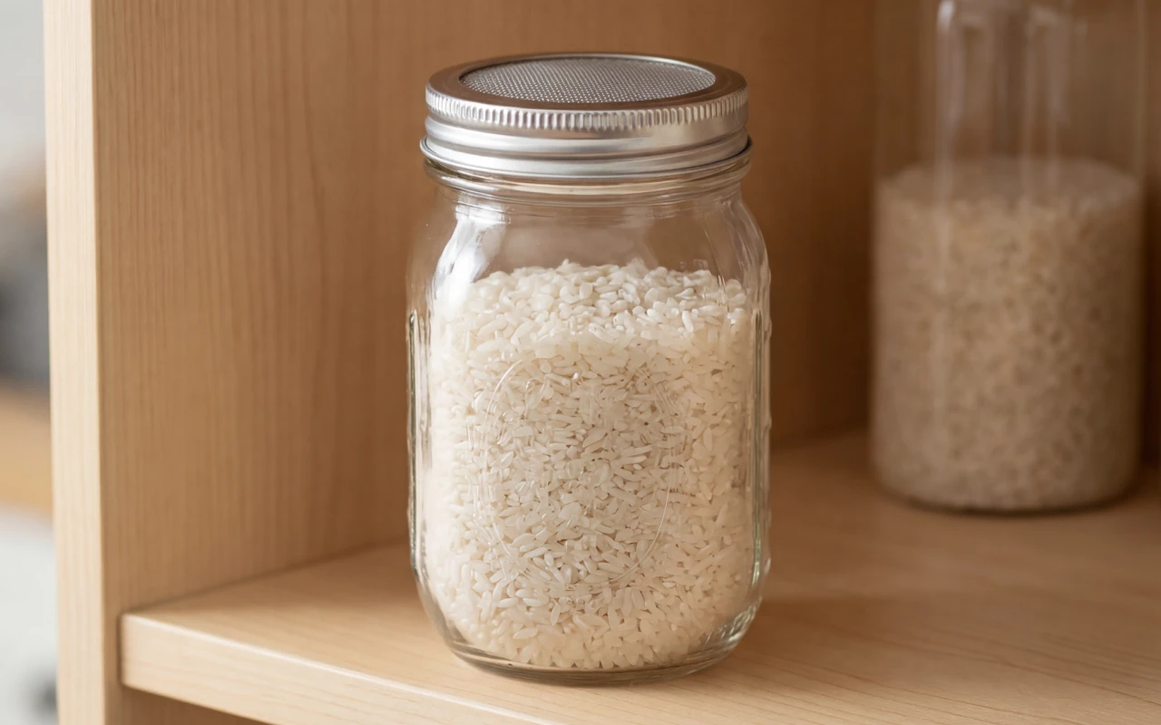 Lagern Sie trockenen Reis, Hafer, Nüsse und Kräuter ordentlich zwischen den Anzuchtphasen. Robustes Glas plus Edelstahl-Deckel ersetzt das Durcheinander einzelner Siebtücher.