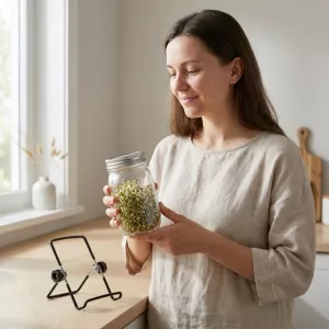 Ich habe das Sprossen-Set gekauft, um mehr Vitamine in meine Frühstücke zu bringen. Weizensprossen in Joghurtbowls geben mir gleichmäßige Energie, und das Sieb rostet nie.