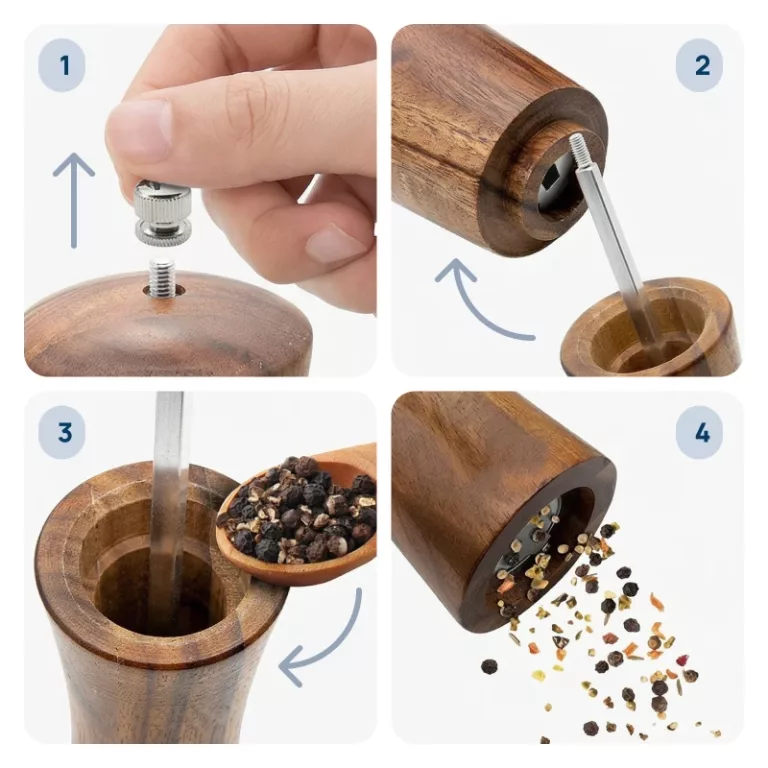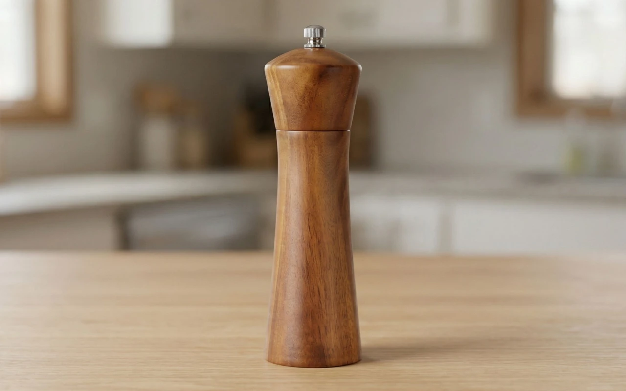 Das Akazienholz passt perfekt zu unseren Schneidebrettern. Ich schätze, wie einfach man nachfüllen kann, ohne zu verschütten, und ein paar Drehungen liefern reichlich Würze.