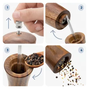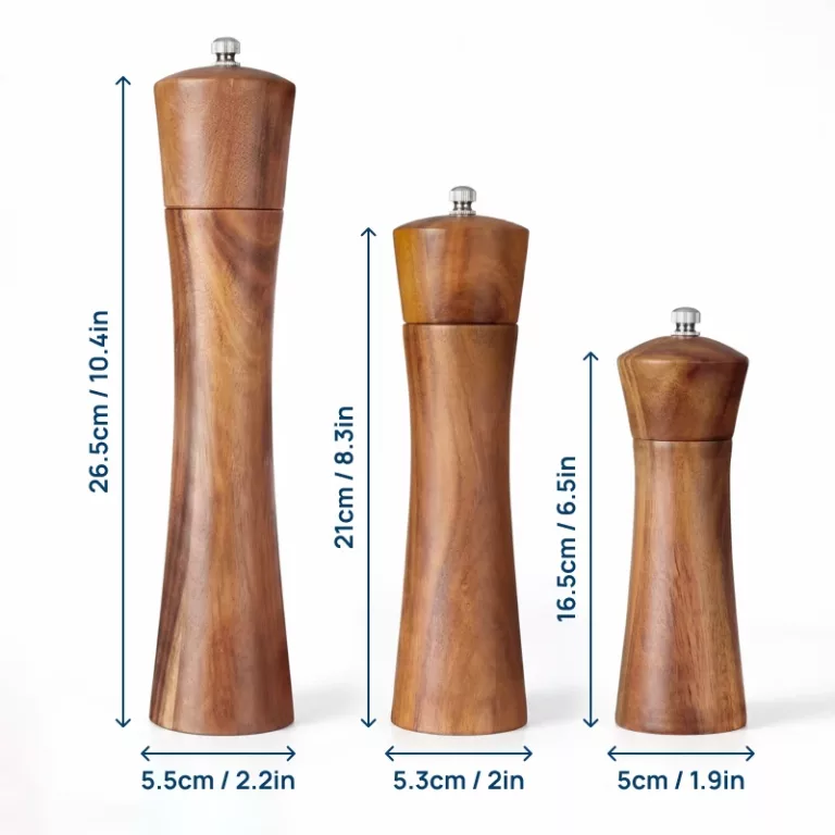 Diese Holz-Mühlen lassen Abendessen unter der Woche besonders wirken. Die Drehbewegung ist geschmeidig, der Mahlbereich ist riesig und das Akazienholz sieht wunderschön auf meiner Arbeitsplatte aus.