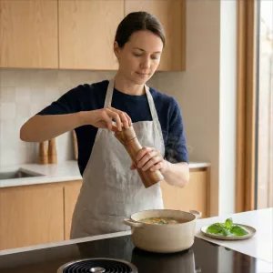 Ich benutze grobes Salz für Steaks und feines für Suppen, und das Umschalten dazwischen ist ganz einfach. Die Mühlen fühlen sich robust und bequem an, selbst bei großen Familienessen.