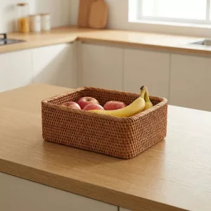 Der Nygex-Korb sammelt verstreute Lebensmittel an einem praktischen Ort. Die handgeflochtene Rattan-Konstruktion fühlt sich glatt an und bleibt dabei zuverlässig stabil. Offene Seiten ermöglichen Luftzirkulation und helfen, beliebtes Obst länger frisch zu halten. Die schlichte Form passt leicht in Regale und lässt überfüllte Schränke geräumiger wirken.